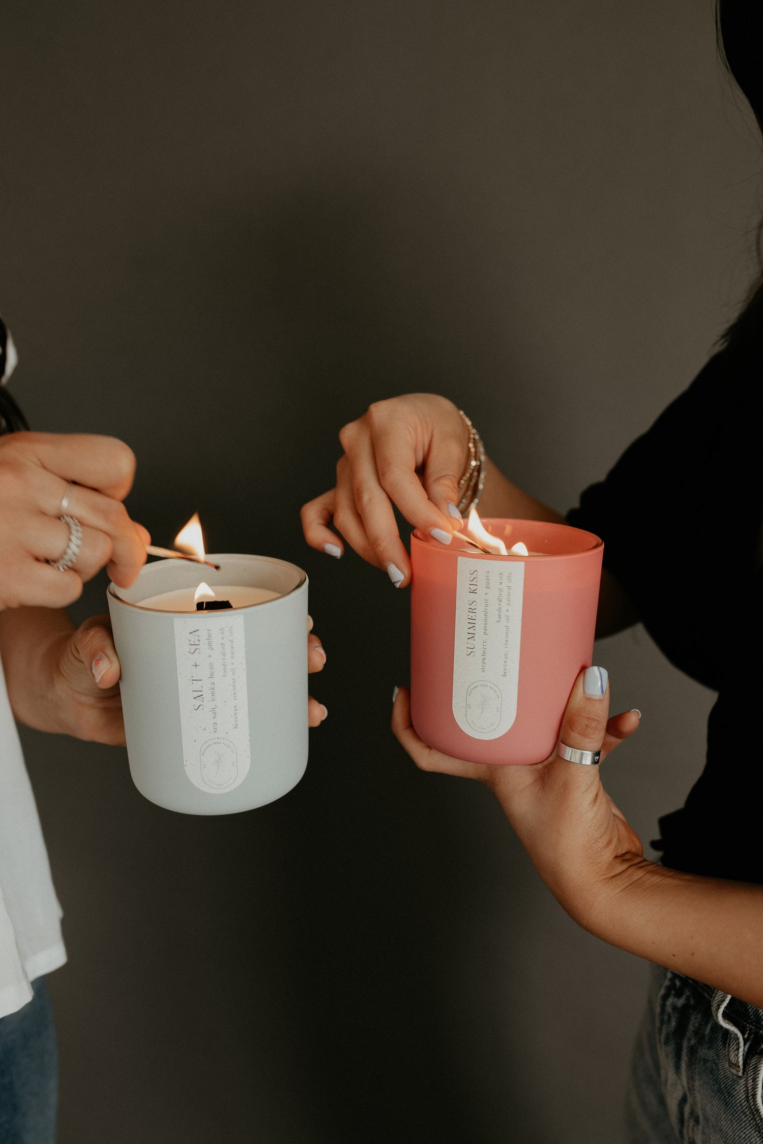 Before lighting your candle, always trim the wick to 1/4 inch to ensure a controlled, clean flame. This will prevent soot release and build-up in your candle and also helps your candle last longer!