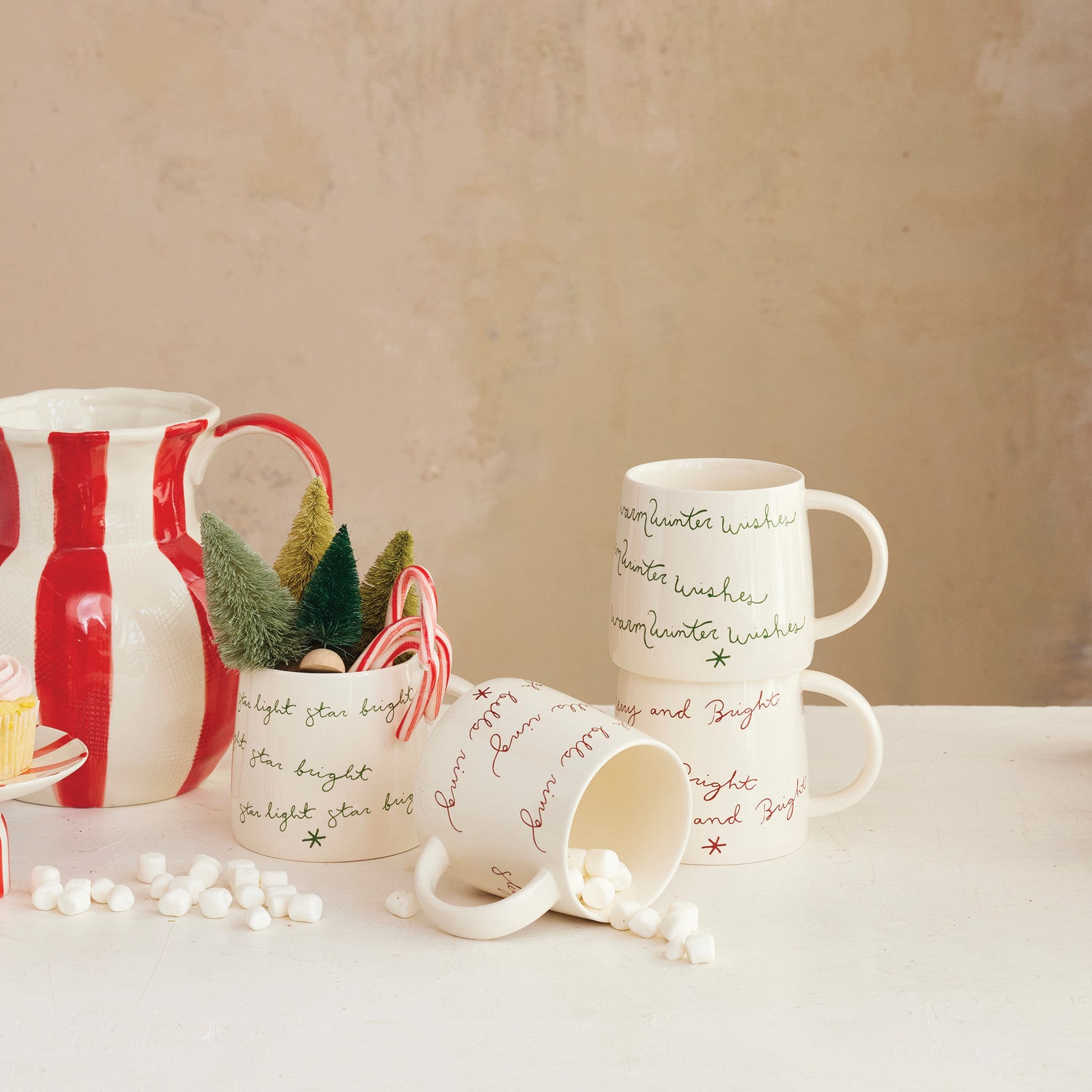 Indulge in the holiday spirit with these holiday saying stoneware mugs! With a 16-ounce capacity, they're perfect for all your favorite drinks. Use them for entertaining, as decor, or as a thoughtful gift for loved ones.