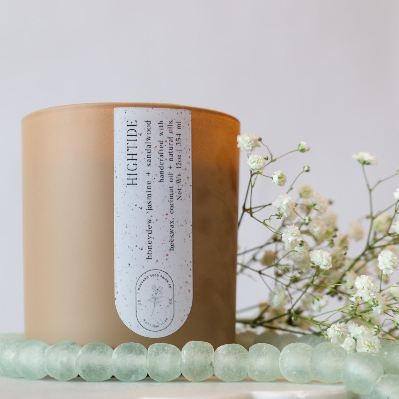 Indulge in the luxurious aroma of Hightide, a blend of honeydew, jasmine, and sandalwood. Let the sweet and floral scents transport you to a peaceful paradise, while the warm and woody notes soothe and relax your senses. Elevate your space with Hightide candles and experience pure bliss.