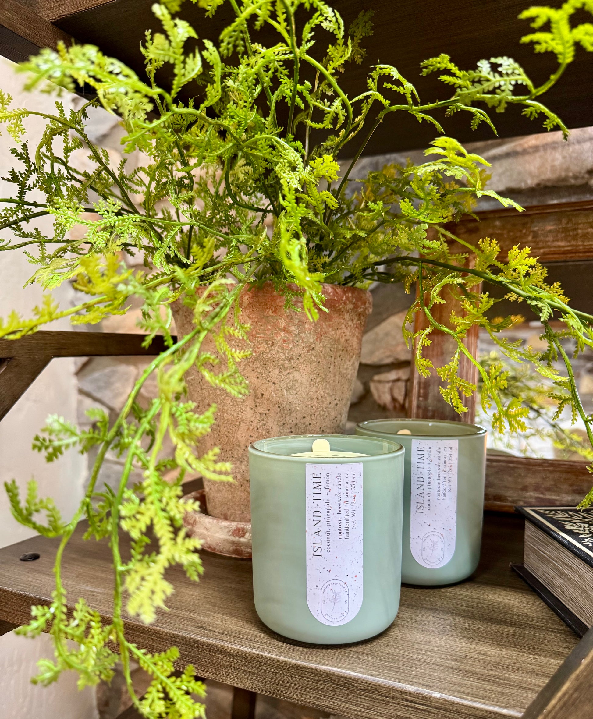 Escape to paradise with our Island Time candle. This entoxicating blend of coconut and pineapple, complemented by subtle hints of lemon, instantly transports you to sun-drenched shores. Light the wick and let tropical serenity wash over your space, no plane ticket required.