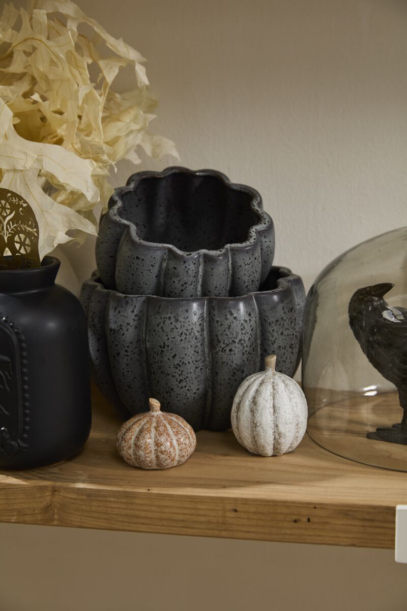 Celebrate the cozy charm of harvest season with the Spiced Pumpkin Pot Collection. Expertly crafted ceramic pots mimic the natural curves and colors of pumpkins, available in warm white, vibrant marigold, or deep black with a matte finish. These elegant yet understated pots bring autumn’s warmth indoors, making them perfect for seasonal decor or gifting.